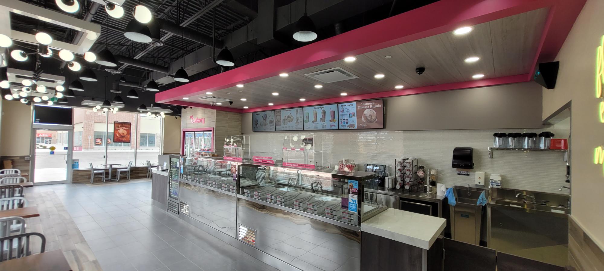 Baskin-Robbins combines modern finishes and contemporary design while maintaining a nostalgic, sentimental feel. New locations in Brampton and Mississauga reflect the vibrant and sleek look of the modern-day ice cream parlour.